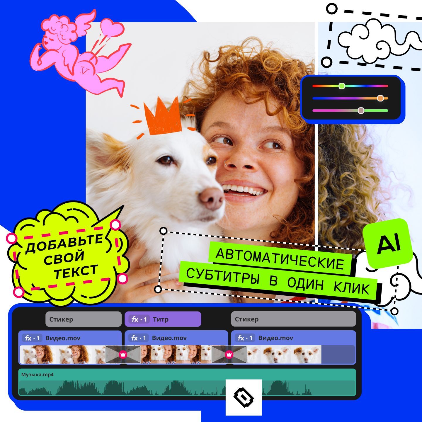 - Добавляйте титры и автосубтитры