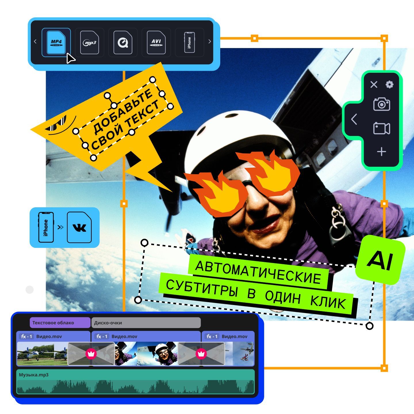 Интуитивный интерфейс поможет быстро освоить программу: вы легко сможете создать классное видео, даже если раньше никогда этого не делали.